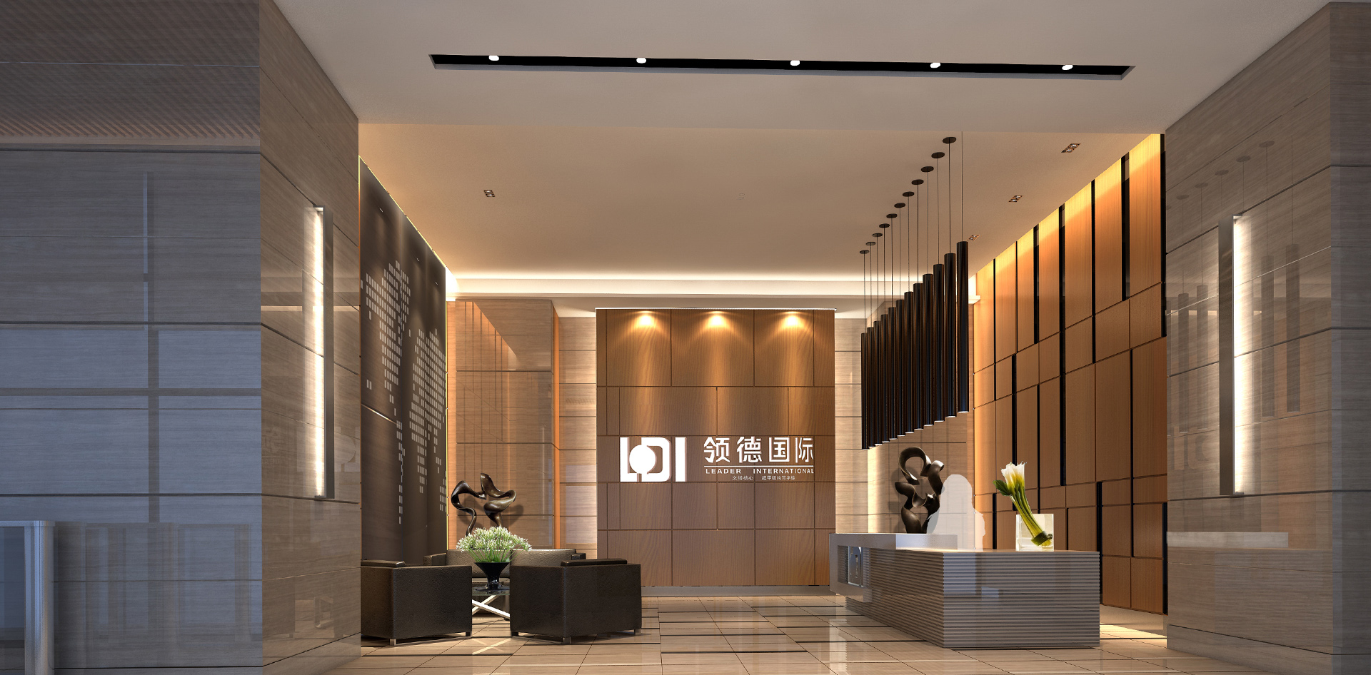 本项目整体空间以现代构成的有机结合,运用与建筑外观相互呼应的线条的多种诠释手法,体现空间的现代感与科技感,搭配具有肌理的材质与光影,体现出简洁、现代而不失细节的追求,营造出具有国际商务水准的办公空间。
