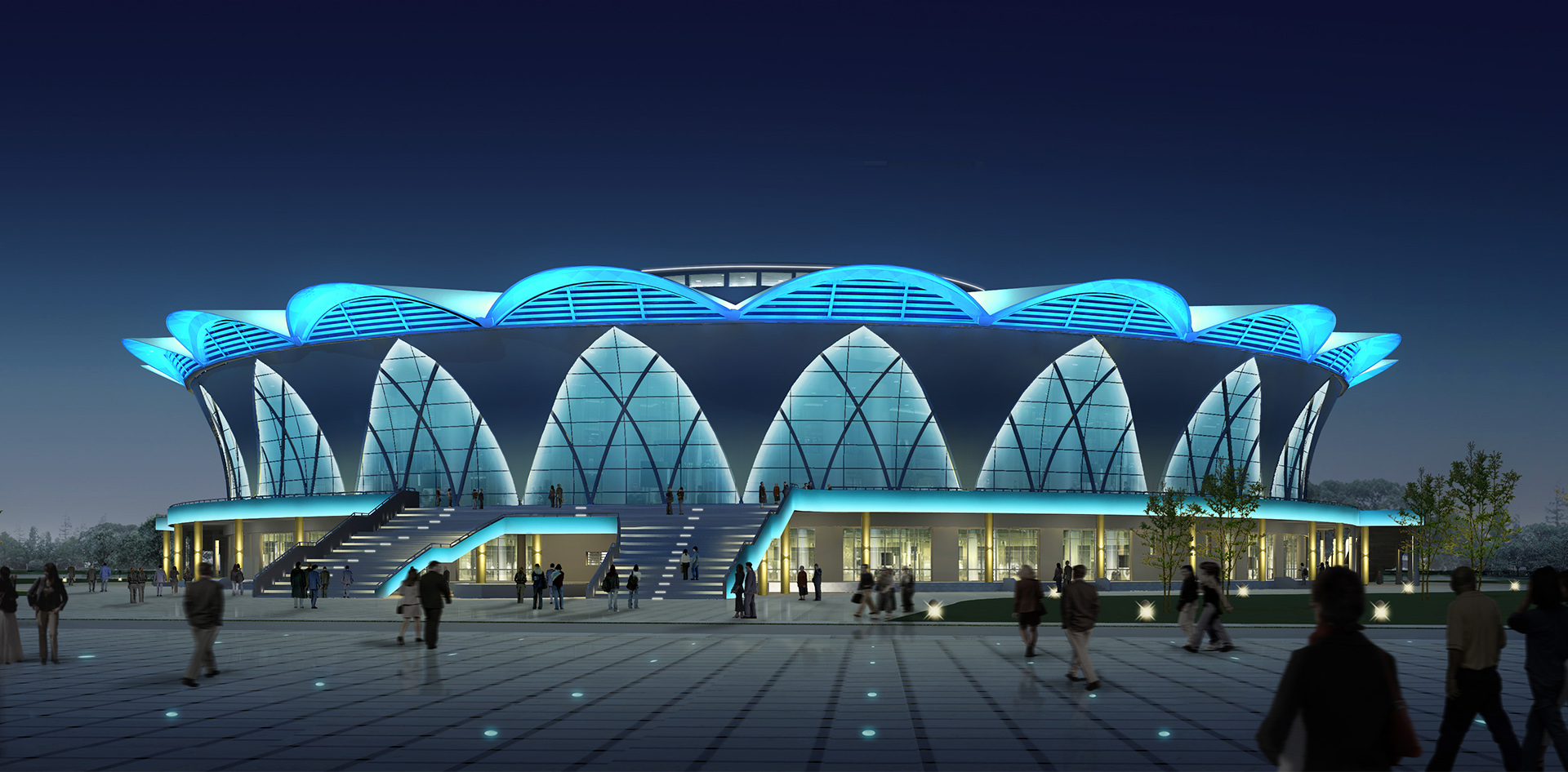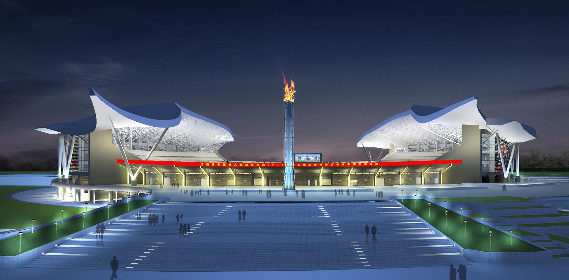 灯光以“刚柔并济,文武双全”为主题,体现主体馆的刚强之气,游泳馆的水文化--“水为秀”,球类馆的美丽形态--“花为美”,整体夜景效果气势恢宏,又不乏精细之美。