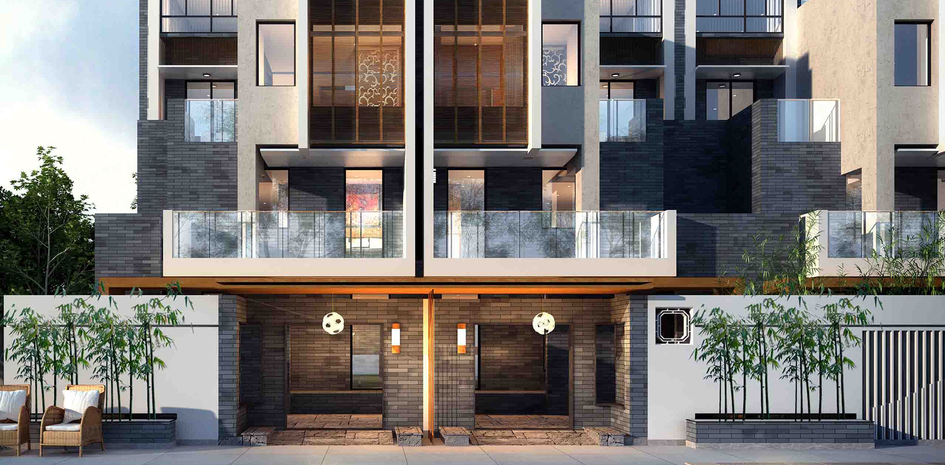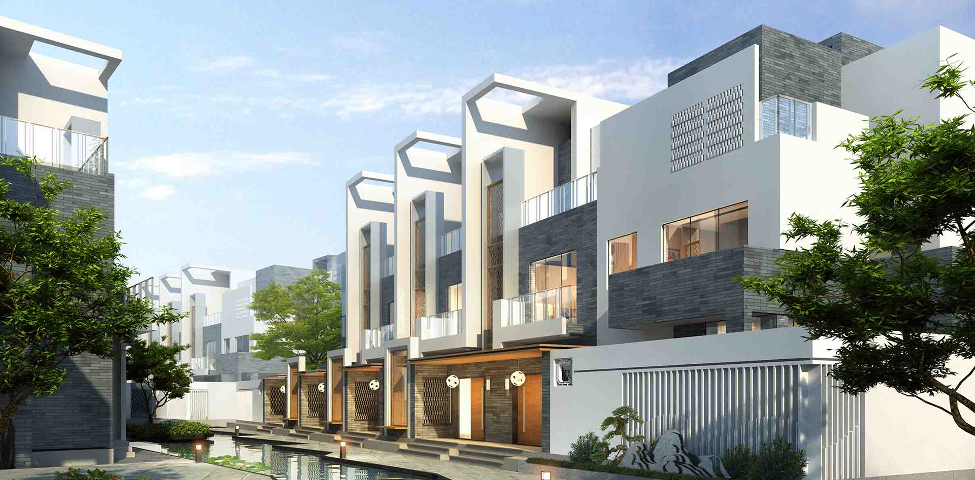 本项目立面造型设计注重以人为本、尊重自然,与自然相协调的理念,使建筑造型既具现代感又不会在环境中显得突兀,建筑外形主要以现代极简主义风格为主,利用木格栅、假山浮雕、青砖文化石、山水枯石等处理手法,在极简主义风格里融入了新中式风格元素,不仅可以带来良好的视觉效果,而且还能带来一种独特的熟悉感。