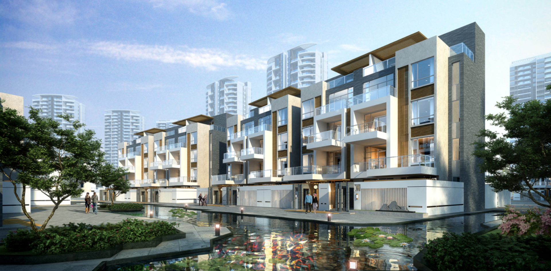 通过分析项目用地价值,方案采用南低北高的布局形式,整个住宅用地的高层、叠墅、幼儿园各板块分区独立、结构紧凑、收放自如,叠墅区拥有较高私密性和丰富小景观,而高层区采用点、板结合的方式,错落有致,营造出阔绰的集中园林空间。
