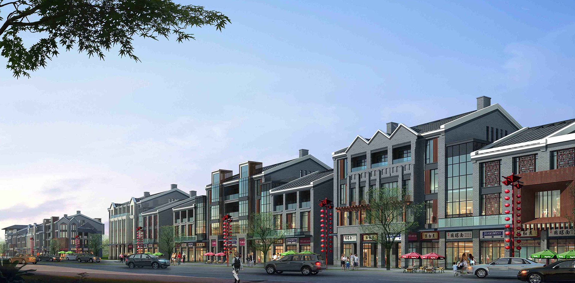 本项目为中高端开发项目,业主提出要充分结合地域特色文化来设计。既要考虑传统文化的传承,又要诠释出不一样的商业模式和文化气息。设计时倾力描绘出“路口有故事,转角即回忆”的“古镇风情”特征,打造全球红色旅游人士的朝拜圣地,体现“一街一世界,一店一风情”的个性化街区特色。