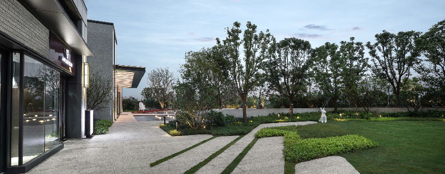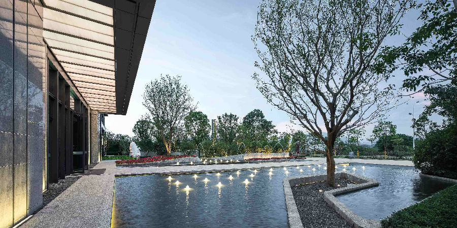 “半城山色半城湖”,这是融创 · 玖樟台景观的设计概念,景观的语言与建筑之间无时无刻不在相互平衡,虚实相生。很多微妙的情境难以用固有的形式来限定,设计也总是在做人性化的细微调整。设计从纸上跃然落地现实的过程中,注重与场地的协调性,以最大化程度还原设计。