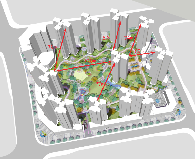 围合式布局亦是数千年文化的积淀,居住于此也是享受别样的文化体验。宽敞的楼间距增加室内的受光面积和时间,经过日照分析,全部满足大寒日两个小时的日照要求,大大提高居住的舒适度。