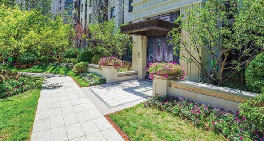 项目将各个景观节点衔接为层层递进的空间序列,从公共空间到私密空间的层次入户体验,自然地感受到社区的环境品质,强烈的轴线感给人一种尊贵高雅、又不失诗情画意的艺术品味。