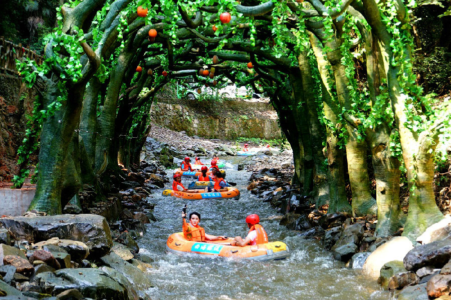 树洞漂流:体现丛林奇幻主题漂,结合声、光、电打造国内最长最特色树洞漂流。