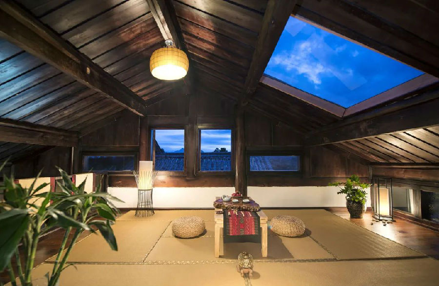 至于室内的空间布局,设计师也有自己的一番见解,空间大,人的心则容易敞开。因此,且亭的房间利用空间感及禅宗元素对心情的影响,以宽阔的大格局设计,打造了半开放式的屋顶,给人以不一样的空间体验感。躺下静静地感受束河的天空,不由得有一种豁然开朗的心境。