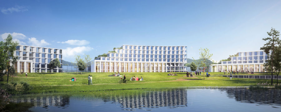 设计团队在规划之初对周边环境及地形进行了深入分析,最终提出:以部分“山”体作为生态绿化公共空间,以中央大型“水”域打造中央生态核心水景公园,以“教、学、产、研”多功能的建筑组成生机盎然的职教“城”。
