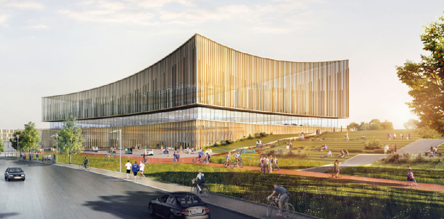书中自有黄金屋,图书馆通透的玻璃结合百叶窗外立面,透露出一丝丝神秘感,其极具张力的前卫造型如同一本厚重的书,让人忍不住想要靠近,畅游于这知识的海洋。