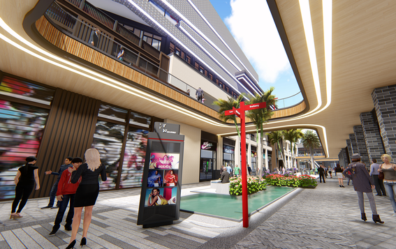 此外,二楼利用平面动线“镂空”设计,开设多个中庭、庭院。这样不仅加强了首层与二层的商业视觉联系,还可让一层及二层的商业门面及广告都得以很好的展示。