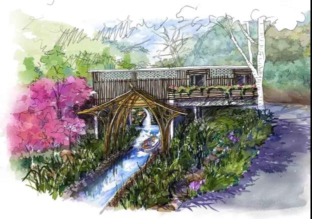 花卉蔬果廊漂流 :在漂流梦幻花涧段以花卉、蔬果、植物绿化等生态方式打造人在画中漂的意境。