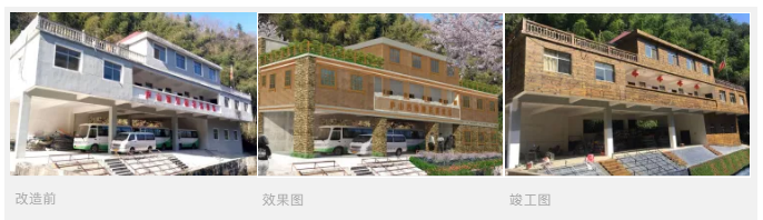 起点服务区办公楼:外立面仿木纹处理,整个景区建筑风格和谐统一,对建筑进行外立面仿木纹改造处理,打造绿色环保生态建筑。