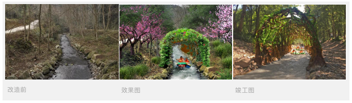 在项目落地过程中,秉承自然与人工完美的结合的原则,利用先进施工技术以及声光电技术,创造非凡体验。通过声光电技术导入和林相改造,以十里桃林、摩崖石刻、亭台廊榭、景观设施等形式,营造一种人间仙境的旅游氛围。