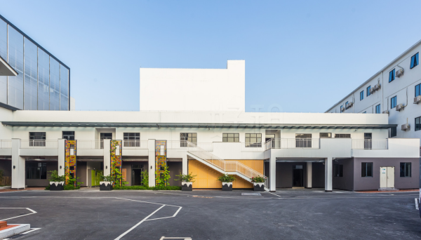 在改造过程中,建筑正立面的设计手法以改造屋顶翻新墙面为主,内墙面及侧墙为涂料粉刷,体现简约现代新中式风格,与创新艺术园区更贴切。同时考虑实用性与美观效果并重,外立面以外挂装饰和涂料粉刷为主,重点改造公共区域,合理分配造价。对于创意园的多元化业态模式,还需考量在同一空间下的办公、商务、餐饮等多功能汇集的多样性和包容性。