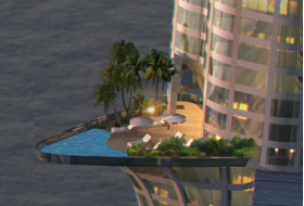 充满造型感的6个眺台,迎合澳洲人喜爱户外活动的习惯——两个低层眺台为开放式,设有户外无边际泳池;上层眺台为有盖封闭式,能发挥遮挡风雨的作用;顶层更设直升机场,配合黄金海岸作为澳州乃至南半球最高档次旅游目的地的配置设施!