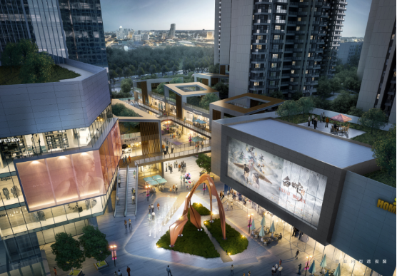 但是——想要在“基地形状不规则,用地被绿地公园隔断,城市展示面一定程度被破坏,商业配套严重缺乏”的现状下,树立起一座“城市文化休闲娱乐目的地、城市开放空间、集城市公园和社区活动于一体的城市地标”,并不容易。