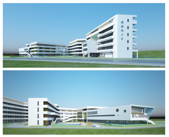 新式教学楼:根据学校功能空间的动静需求,结合不同尺度和不同开敞程度的庭院、廊道和运动场,将教学、办公及运动空间串联起来,以退合式院落空间组织布局。