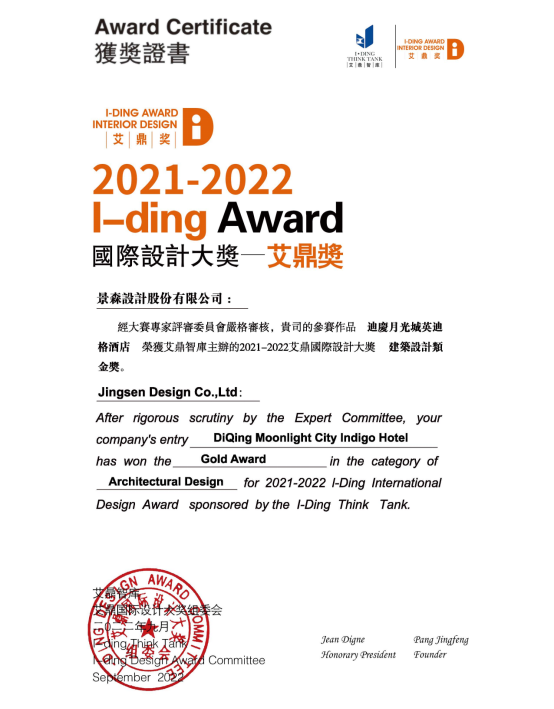 艾鼎国际设计大奖(I-ding Interior Design Award)简称艾鼎奖,是由艾鼎智库依托世博平台设立的国际设计类大奖,以推动设计行业发展为愿景,致力于发掘和表彰优秀设计师、设计作品及设计机构,是中国、亚太乃至全球都极具创造性和影响力的设计大奖。