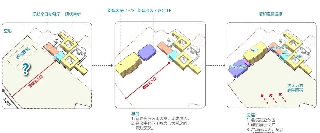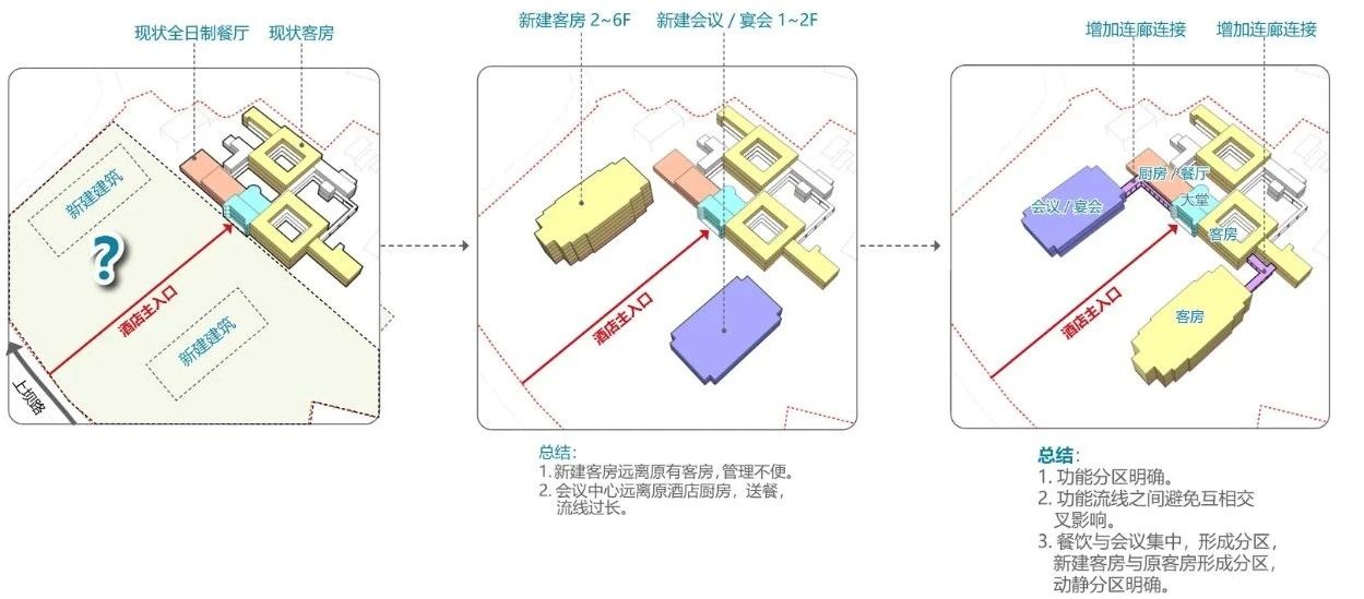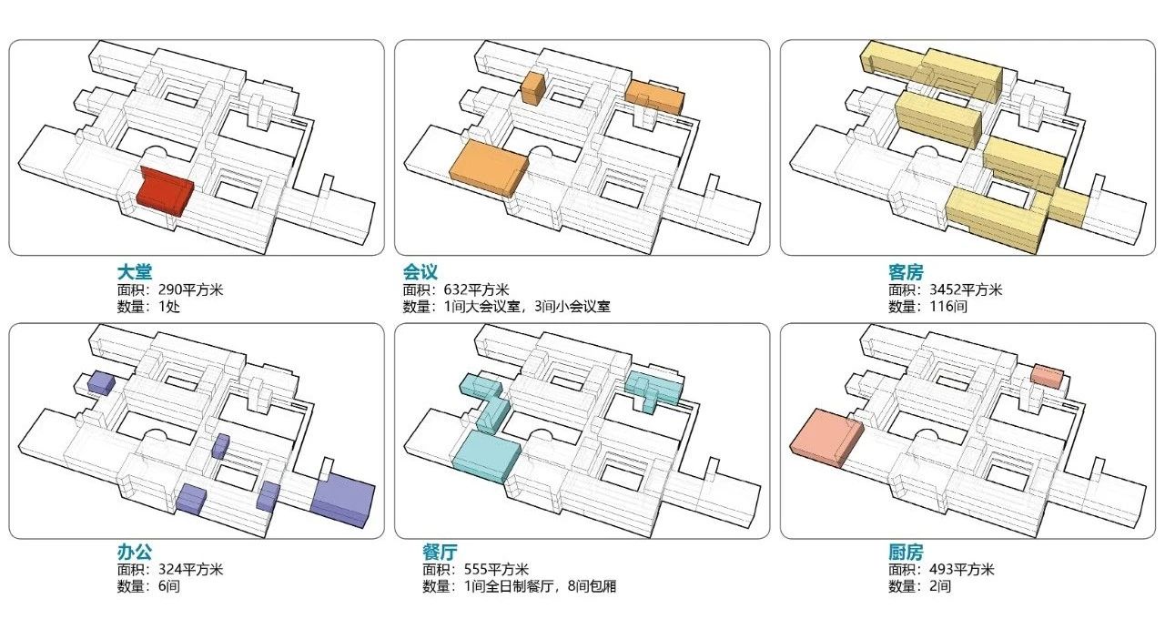 新建客房楼,新建会议中心,新建配套活动场所,如棋牌室、儿童游乐室、多功能大厅等,满足日益扩大的市场需求的同时,提升商务、休闲、娱乐等全域需求的功能配套。